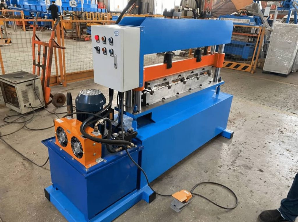 The Metal Stainless Steel Hydraulic Roof Bending Machine is a specialized hydraulic equipment designed for the formation of metal roof ridge covers (ridge tiles). It drives the upper and lower molds to close through a hydraulic system, and bends metal sheets such as color steel plates and galvanized plates into a ridge shape that conforms to the roof slope (such as V-shaped, herringbone shaped) in one go. It is the core supporting equipment for steel structure and color steel tile roof engineering. Its core structure includes: hydraulic pump station, body frame, adjustable ridge mold, foot pedal/PLC control system, limit and safety protection device.