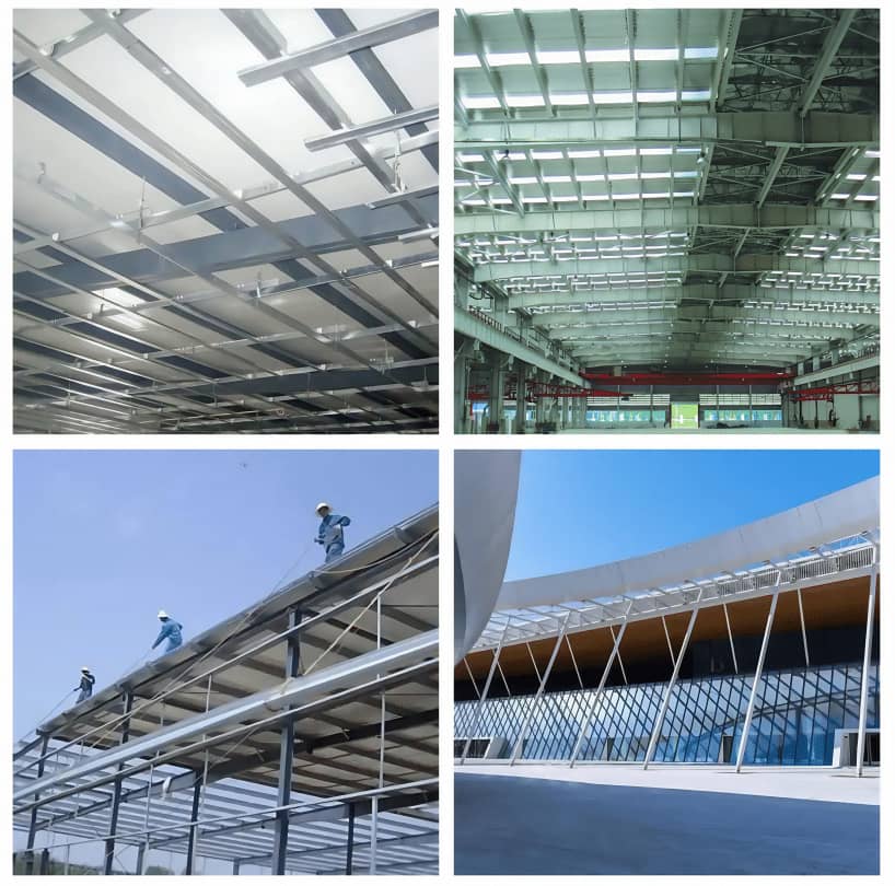 Industrial/civil buildings: roof purlins, wall beam supports for factories, warehouses, aircraft hangars, sports venues, and market flower shed skeletons;